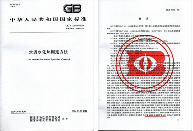参与编制国家标准(水泥水化热测定...