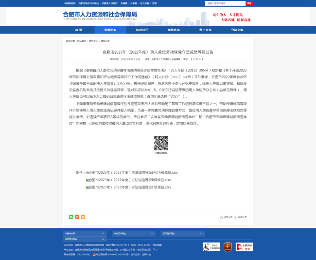 为进一步提高用人单位守法诚信意识,促进用人单位依法用工,构建和谐稳定的劳动关系,切实维护劳动者合法权益,市人社局根据《劳动保障监察条例》《保障农民工工资支付条例》和《关于开展2023年劳动保障书面审查和诚信等级评价工作的通知》文件要求,通过各县市区对辖区内企业日常巡查检查、书面材料审查以及专项检查等劳动保障监察结果,金煌集团继续保持合肥市2023年劳动保障守法诚信A级单位。
