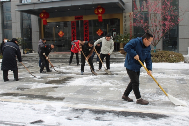 连日来,合肥市出现大范围雨雪天气。雪景虽美,但是经过一晚上大雪的洗礼,小区路面出现积雪现象。为保证金煌广场道路通畅和居民的安全出行,金煌物业及时启动雪天铲雪除冰预案。金煌的广大党员干部群众以霰为令,扛起铁锹,一场声势浩大的“破冰行动”正式上演。