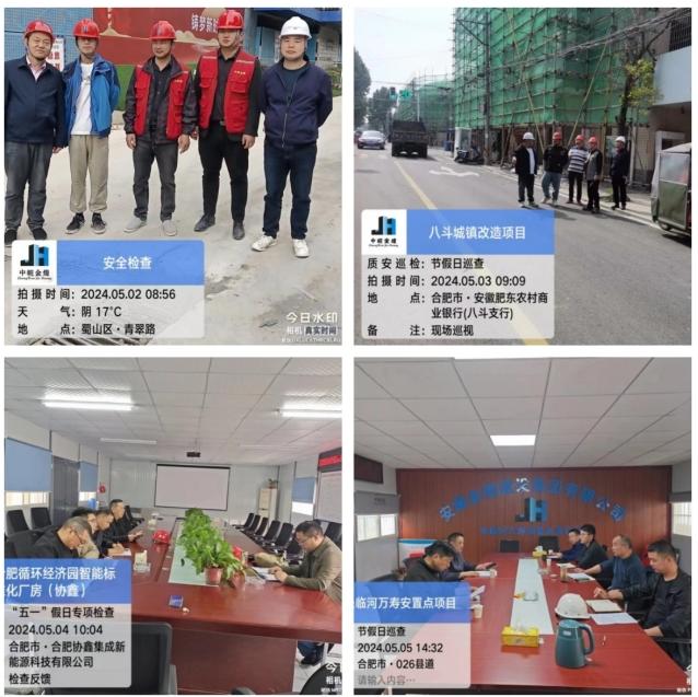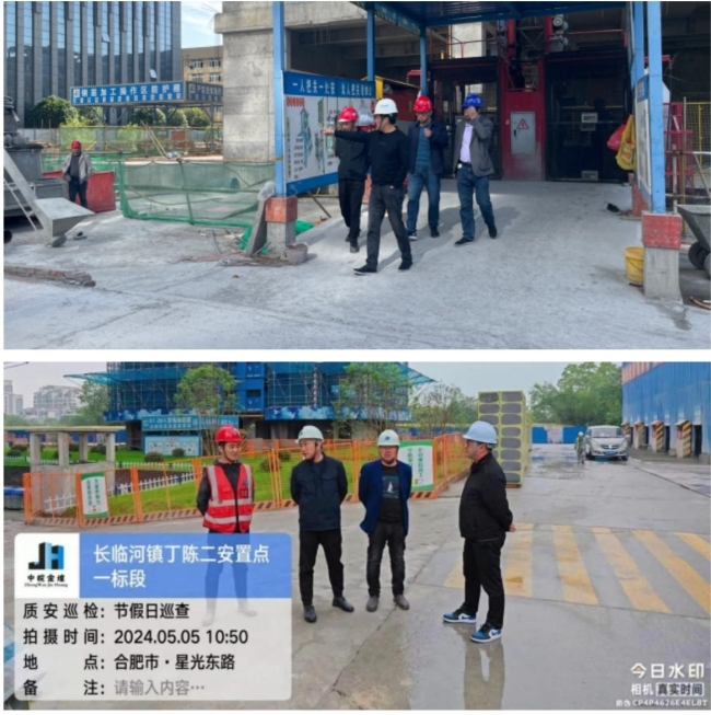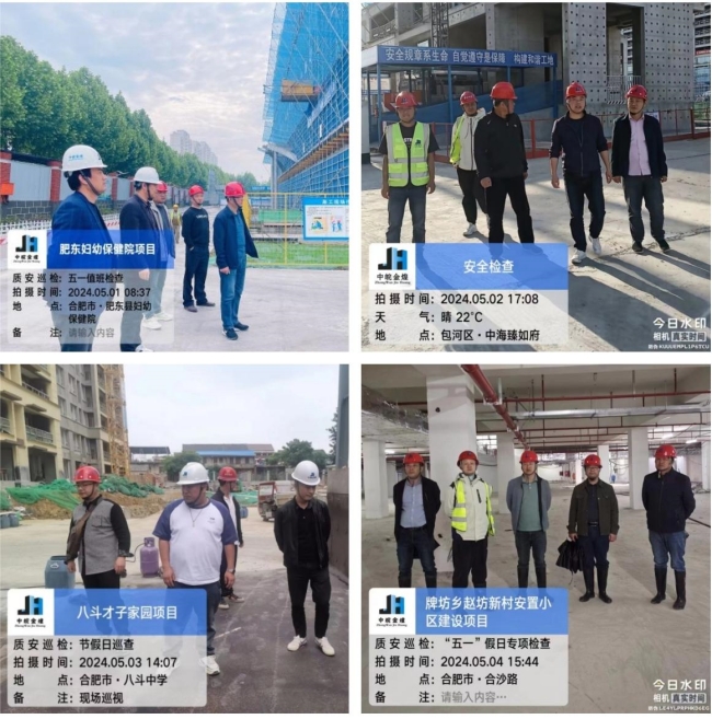 “五一”节假日期间集团公司工程管理人员针对“肥东妇幼保健院项目”、“合肥循环经济示范园智能产业标准化厂房项目”等十多个重点工程在建项目,全方位驻守施工现场带班检查。他们前往各项目部,对施工现场安全作业、安全文明施工,关键人员在岗等进行现场巡视监测检查,确保大干施工期间,安全质量双重把控,坚决杜绝,安全质量事故发生的风险。