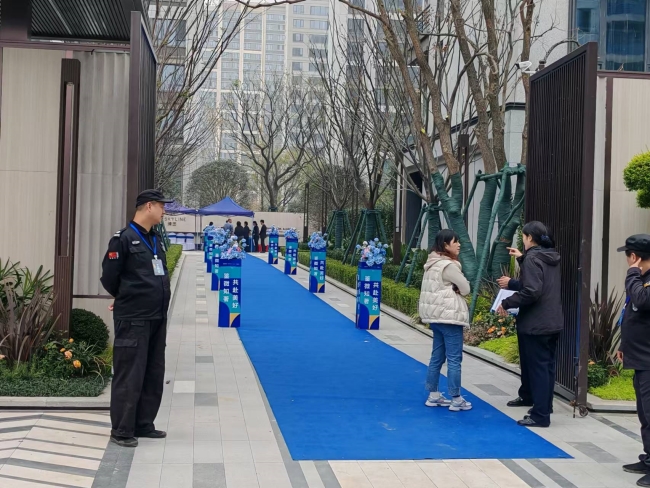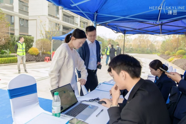 一缕缕晨曦的微光穿透浓雾,铺撒在大地上,丁达尔效应让此刻小区的楼栋与绿植尽显神秘与美妙。在工作人员的一场精心的策划与准备后,一张精致典雅的蓝色地毯隆重的迎来了一双双满怀期待的脚印。在项目现场,一栋栋高楼挺拔而立,外立面线条顺滑流畅,色彩搭配温馨浪漫。楼间距的宽敞,极大限度的保障了每户阳光的充足。业主们怀揣着激动与好奇的心,与现场的技术人员交流攀谈。技术人员对于他们提出的户内尺寸测量、墙面平整、防水保温、水电走线、钢筋混凝土料检等一系列专业问题,给予了详细而满意的解答。