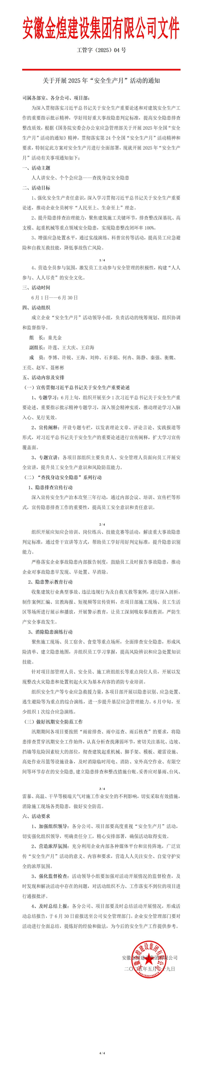关于开展2025年“安全生产月”活动的通知