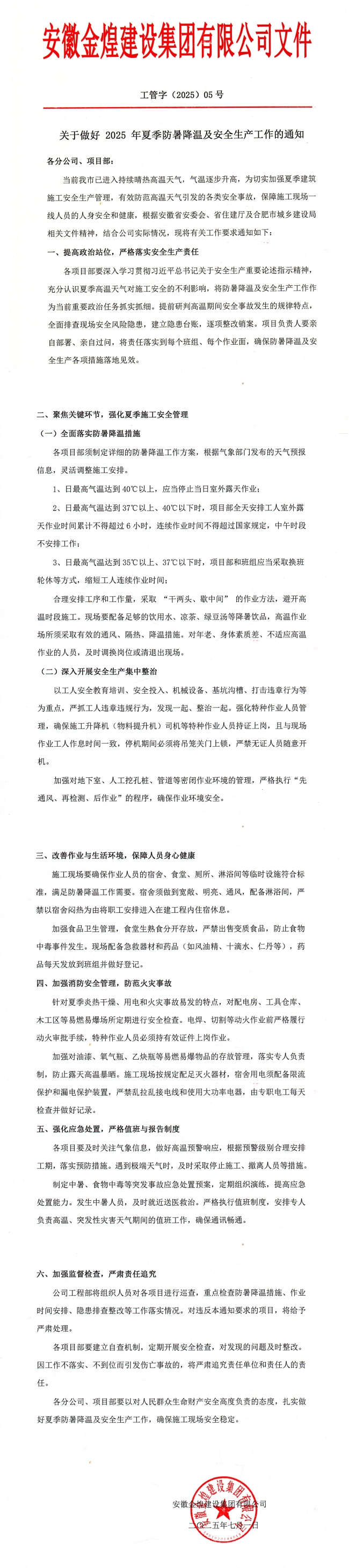 关于做好 2025 年夏季防暑降温及安全生产工作的通知