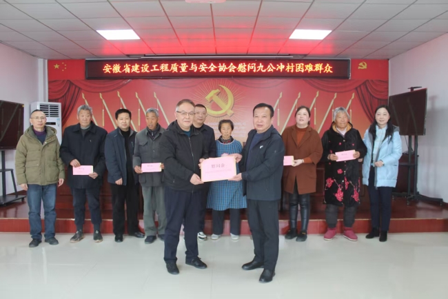 无独有偶,立春之日,金煌工会在安徽省建设工程质量与安全协会的带领下,来到六安市裕安区石板冲乡九公冲村和独山镇太安村两处开展困难群众慰问活动。通过走访慰问,金煌工会进一步了解困难群众在生活方面存在的困境,鼓励他们保持积极乐观的心态,树立信心,积极面对眼前的困难,让困难群体都能感受到我们的关怀与温暖。