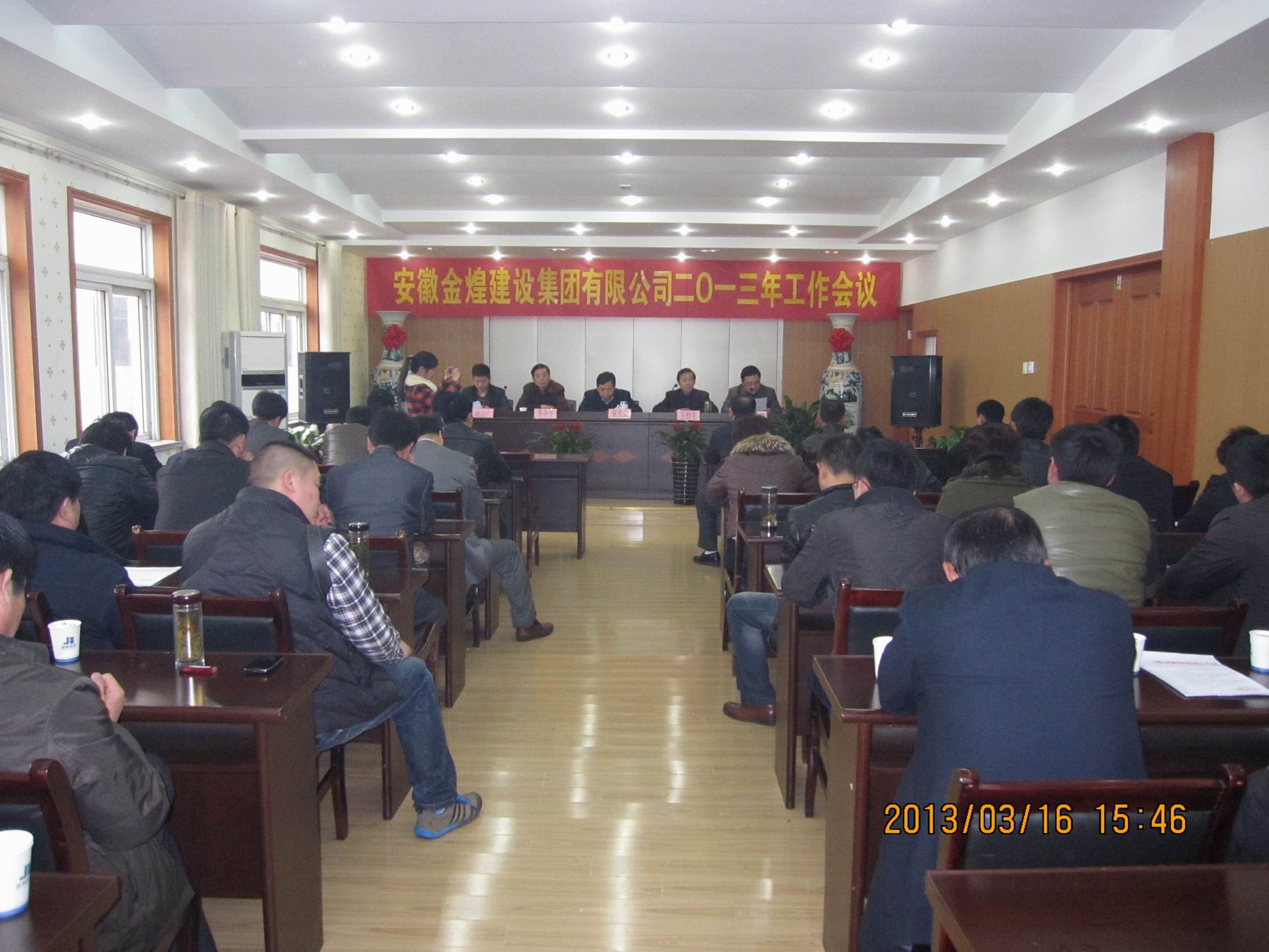 3月16日下午15时,安徽金煌建设集团2013年度工作会议在集团公司会议室召开。集团董事长童光金同志,常务副总李善生同志,总顾问吴梧生同志等有关领导出席会议。来自集团公司项目部、项目经理等100余人参加会议,会议由集团总顾问吴梧生同志主持。 会上,童光金董事长首先作了题目为《抓住机遇 奋力拼搏 再谱金煌新华章》的工作报告。对集团2012年度各项经营管理工作进行了总结回顾,对2013年度各项工作计划进行了部署。 报告指出,2012年集团在董事会的领导下,广大员工坚定发展信念,紧紧围绕年度生产经营目标,勤奋实干、锐意进取、攻坚克难,有效地完成了2012年度既定的各项工作任务。过去的一年里,建筑市场竞争激烈,尽管我们的施工产值有大幅度提升,但离安徽省50强企业的标准还有较大差距。建造师和技术型人才严重欠缺等等问题,是制约我们做强做大、进一步发展的瓶颈。所有的项目在运作前都要采取规避风险的措施,对项目、合作人员要进行详细的调查、了解和筛选,承接一个项目不但要有经济效益,更要有社会效益。 报告强调,新的一年,集团进一步推进管理体制改革,实施集团化管理模式,全年经营业务总额25亿元人民币(含跨年度),全面启动全椒开发项目工程,力争本年度完成投资3亿元人民币。开拓新的建筑市场,扩大市场占有率。省内:铜陵、全椒、淮北、宿州、省外力争开拓一个市场。完成建安产值20亿元。继续开展达标示范工地活动,全年施工项目安全生产、文明施工达标率100%,示范工地达标率60%,创省级安全质量标准化示范工地2项,创省、市级优质工程4项。会上,优秀项目经理代表就在建工地的安全质量管理作了发言。 2013集团发展宏伟蓝图已绘就,目标方向已经明确,全体员工要坚定信心,把思想统一到集团全年的工作部署上来,把智慧和力量凝聚到集团战略决策上来,把工作落实到集团既定的目标任务上来,为推动集团实现跨越发展,打造品牌企业做出应有的贡献。