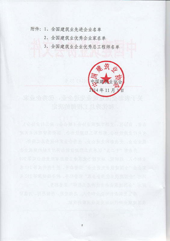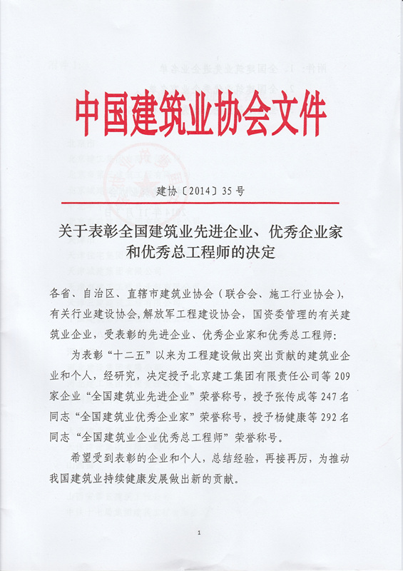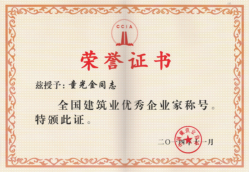 据介绍,该奖项是由全国优秀施工企业家评审委员会负责评审,由中国建筑业协会组织实施。获得“全国建筑业优秀企业家”奖的企业家在深化改革、企业管理、企业经济效益、社会效益等方面应是同行业领先者。加强工程建设行业高层管理人才队伍建设,不断提高施工企业家素质,提高施工企业经营管理水平和核心竞争力,加快发展方式转变,以适应社会主义市场经济条件下对企业家的要求和参与国际竞争的需要。
