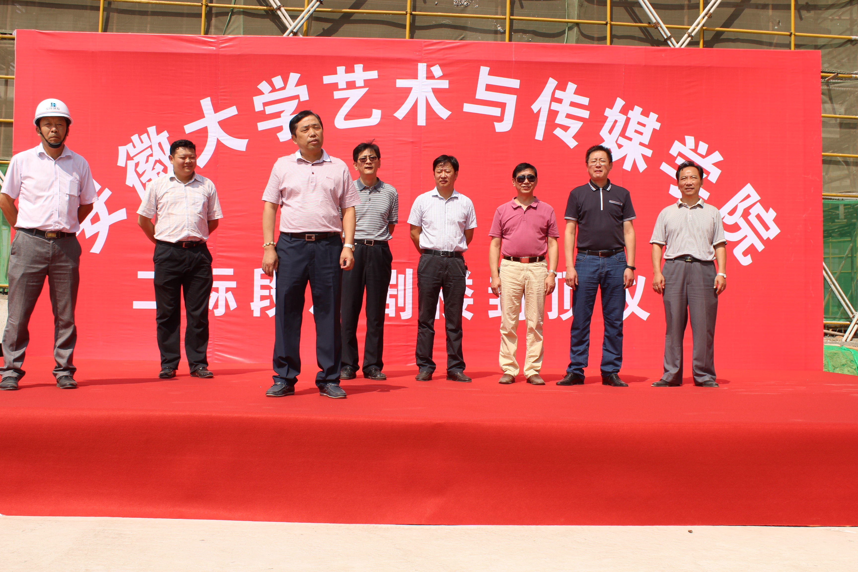 2016年9月12日上午10点28分,由安徽金煌建设集团有限公司承建的安徽大学艺术与传媒学院二标段项目喜封金顶。安徽大学艺术与传媒学院党委副书记沈端良、副院长张晶、副院长郑善忠等相关领导参加了封顶仪式,集团公司董事长童光金先生受邀出席仪式。
