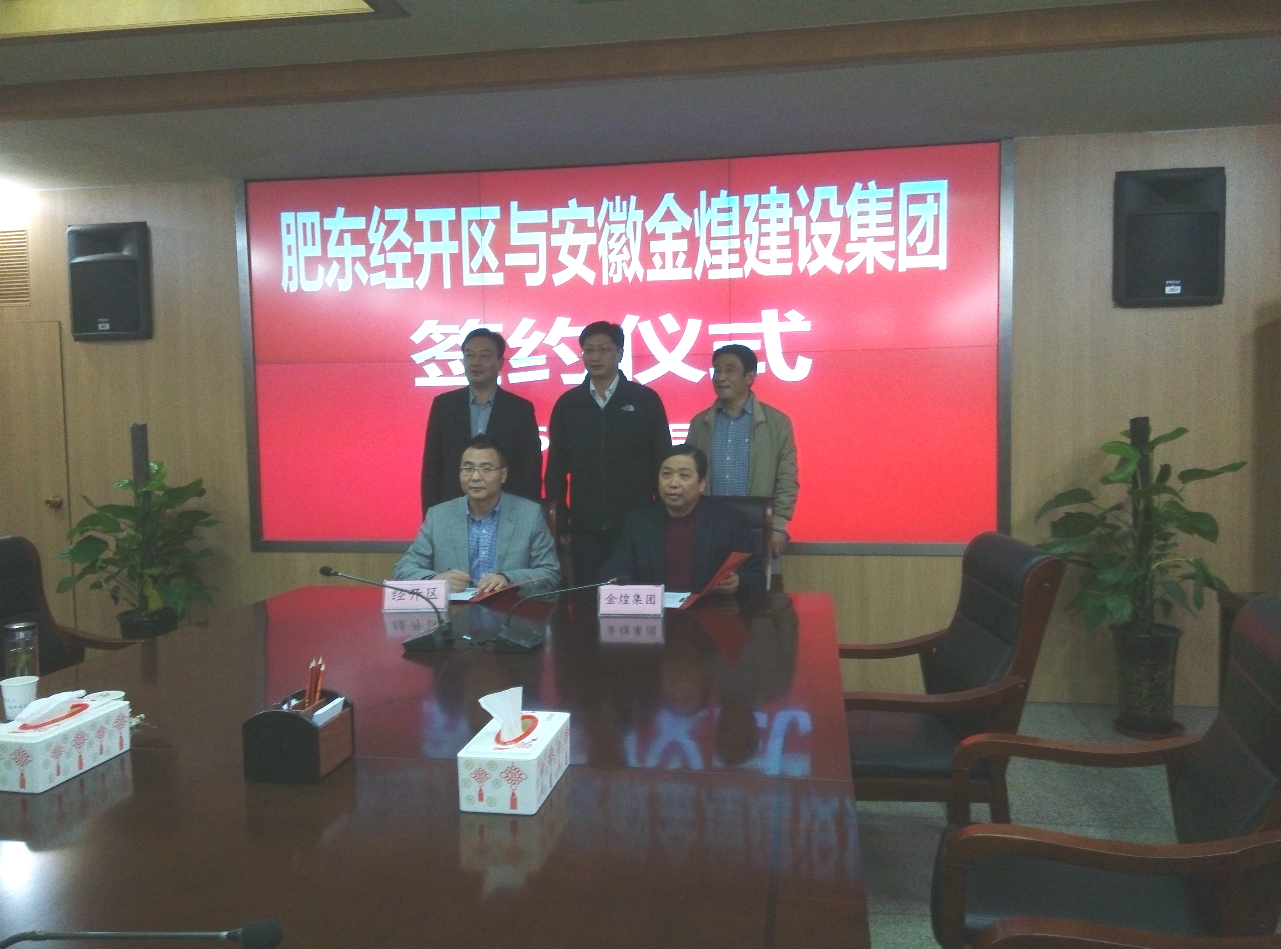 11月4日,肥东经开区与安徽金煌集团有限公司举行战略合作签约仪式。县长孙良鸿、肥东经开区管委会主任王书武及县财政局、招商局等领导参加签约仪式。