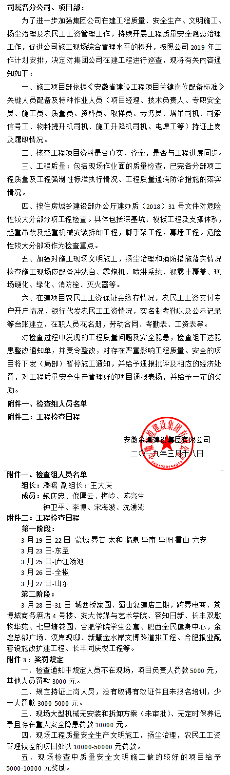 关于开展2019年一季度工程质量、安全生产、文明施工、扬尘治理等综合检查的通知