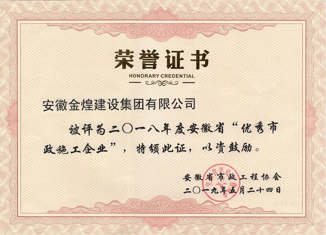 此次取得的荣誉,再次证明安徽金煌建设集团在市政公用工程项目建设中获得社会各界的好评,进一步提升金煌集团的社会影响力和知名度。
