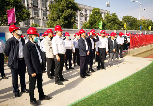 为进一步推进阜阳市装配式建筑发展,金煌集团承建的阜阳颍淮农村商业银行新办公大楼工程作为装配式建筑示范点,迎接阜阳市政府领导一行观摩。5月11日上午8时,阜阳市市委副书记、市长孙正东,市委常委、副市长王玉峰,各县区政府主要负责同志、住房和城乡建设局、经济和信息化局主要负责人、阜阳经开区、阜合现代产业园区管委会主要负责人等100余人参加。安徽晶宫绿建集团董事长刘立超、安徽金煌建设集团总经理吴永华等领导陪同观摩。