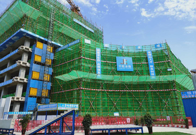 阜阳颍淮农村商业银行新办公大楼项目位于颍南路与颍淮大道交口西北角,由颍淮农村商业银行投资建设,安徽金煌建设集团有限公司承建,装配式构件由安徽晶宫绿建集团有限公司生产,工程总投资3亿元,合同工期为306天。该工程分地上20层,地下2层,总建筑面积为42723平方米,建筑总高度79.9米。本工程建筑结构为装配整体式框架剪力墙结构,项目装配率达65%,地下2层及地上1层至4层均为现浇结构,5层至20层为装配式结构,预制构件类型为柱、梁、楼板、楼梯,外墙装饰面采用一次成型PC反打石材工艺,该工艺全国领先,大量的建筑部件都有车间生产加工完成,它能有效保证混凝土构件成型,提高劳动生产率,促进建筑产业转型升级,装配式建筑是实现绿色建造的重要途径,可提升绿色建造水平。