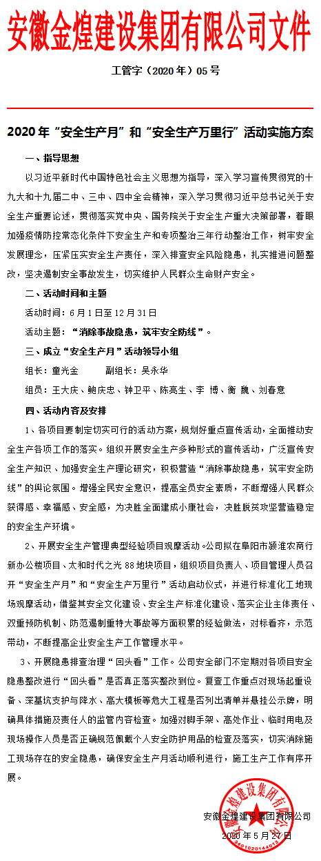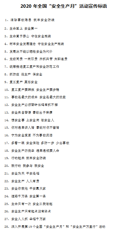 2020年“安全生产月”和“安全生产万里行”活动实施方案