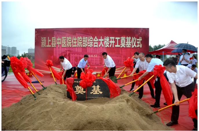 揭牌仪式上,颍上县委副书记、县长窦灿辉,阜阳市卫健委副主任马振华共同为颍上县中医院“二级甲等中医医院”揭牌。颍上县中医院院长刘立广在致辞时,回顾颍上县中医院“二甲”创建的拼搏历程。刘立广表示,此次创建二甲中医院的成功,倾注了医院广大干部职工的汗水和心血,充分发扬了“以院为家”的集体精神。医院全体干部职工将以二甲中医医院揭牌、新住院大楼建设为契机,把“二甲”殊荣作为历练品牌、突破发展、实现跨越的新起点,同心同德、凝心聚力,抓住当前中医药事业发展的黄金时期,充分发挥“一院两区”的区位优势,紧紧抓住紧密型医共体建设,努力把医院打造成为中西医结合并重、特色专科优势明显、中医药文化特色鲜明、基础设施完善、技术水平先进、服务功能完备、就医环境宜人的现代化综合性中医院,为全县人民的健康,为健康颍上做出新的更大的贡献!揭牌仪式结束后,还举行了颍上县中医院住院部综合楼奠基仪式,窦灿辉、马振华、徐云飞、房鲲鹏、张彦、罗士宣、刘立广等与会领导共同为住院综合楼项目培土奠基。