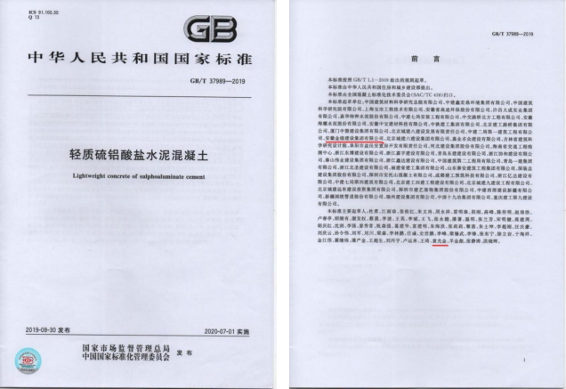 参与编制国家标准(轻质硫铝酸盐水...