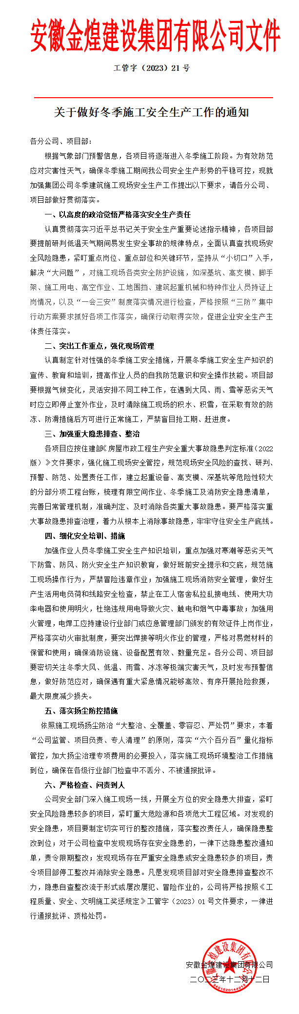 关于开展安徽金煌集团所有在建项目消防、动火作业安全专项整治工作的通知