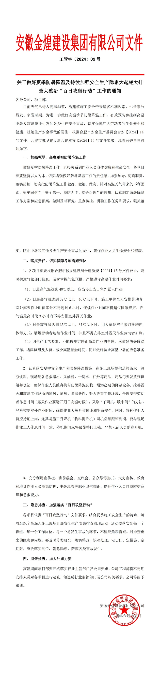 关于做好夏季防暑降温及持续加强安全生产隐患大起底大排查大整治“百日攻坚行动”工作的通知