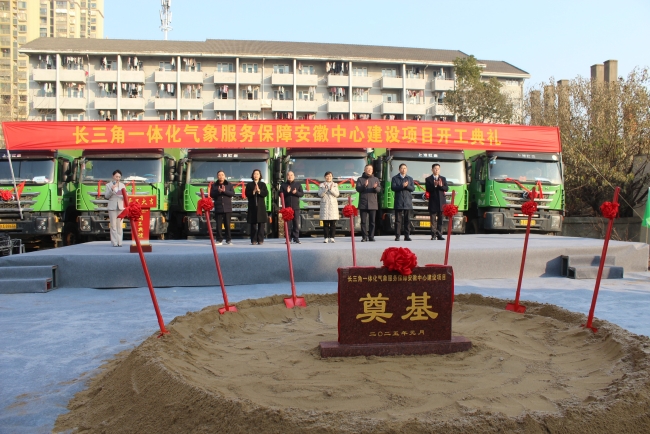 新年的第一缕暖阳照亮奋进的路。1月2日上午8时,长三角一体化气象服务保障安徽中心建设项目举行了隆重的奠基仪式。安徽省气象局党组书记、局长胡雯,安徽省气象局党组成员、副局长程文杰,安徽省气象局一级巡视员汪克付,中共安徽金煌建设集团党委书记、董事长童光金等领导出席了奠基仪式。