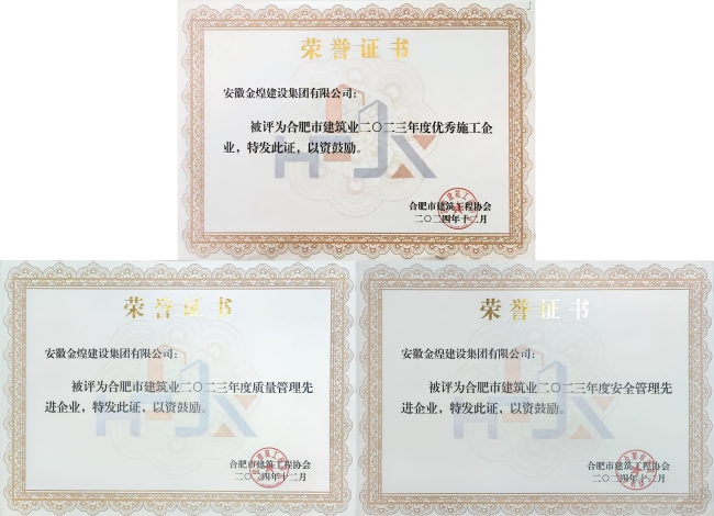 近日,从合肥市建筑工程协会发布的合建协(2024)43号文关于表彰全市2023年度建筑业优秀企业、单项先进企业、先进个人的决定,金煌集团在合肥市建筑工程领域再传捷报。自2008年起,已连续15年保持合肥市建筑工程协会授予的优秀施工企业、质量管理先进企业、安全管理先进企业荣誉,彰显了其在建筑行业的卓越实力与深厚底蕴。