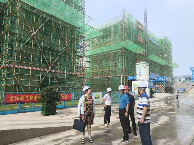 6月26日上午,庐江县人大常委会党组书记、主任杨进真一行莅临由金煌集团承建的庐江县“十四五”县城新型城镇化提质升级一期商贸科技学校项目现场开展“五比五看”调研活动,进一步强化抓发展、抓项目的紧迫感、责任感。庐江县委常委、副县长董邦义,庐江县政协主席王旭东等领导参加调研,金煌集团常务副总经理许莲陪同调研。