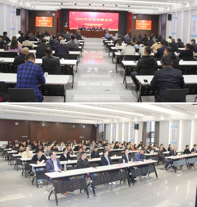 桂香轻盈漫过衣襟,秋意悄然盈满庭阶。2025年10月25日下午15时,金煌集团在总部七楼多功能厅召开2025年度年底预警会议。参加会议的有集团公司中高层领导、各在建项目管理人员等。此次会议旨在分析当前公司面临的各项风险挑战,部署年底前重点工作,确保全年工作圆满收官。