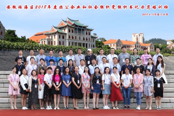 由瑶海区组织部组织的“非公企业和社会组织党组织书记示范培训班”于2018年6月11日在美丽的滨海城市厦门大学开班。中共安徽金煌建设集团党员代表戴平同志参加学习。