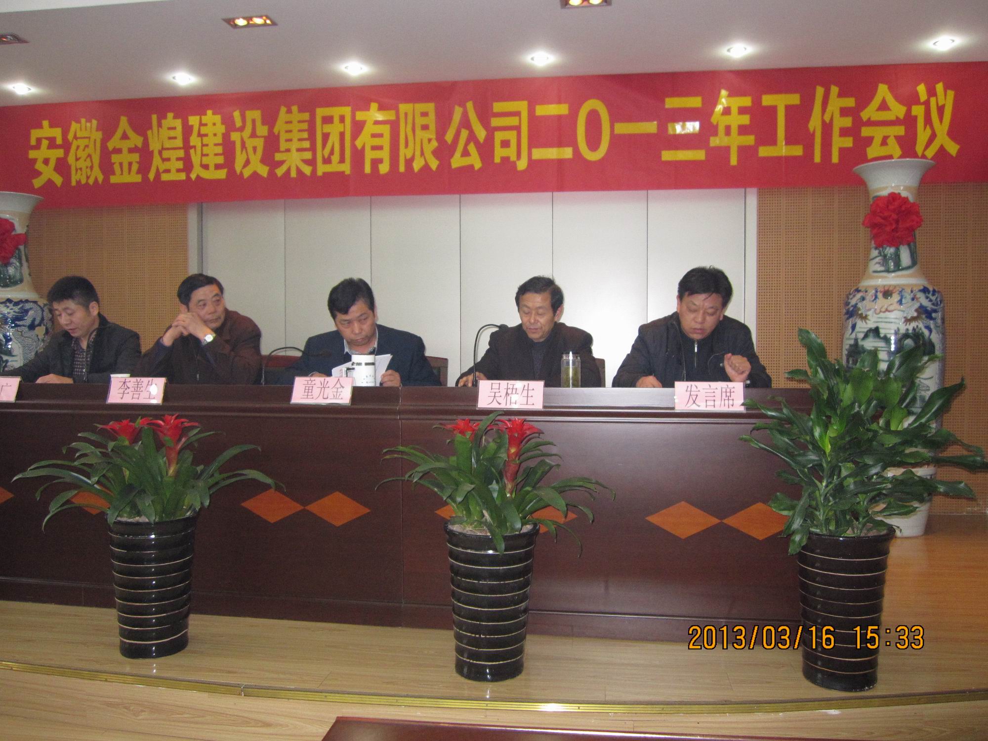 3月16日下午15时,安徽金煌建设集团2013年度工作会议在集团公司会议室召开。集团董事长童光金同志,常务副总李善生同志,总顾问吴梧生同志等有关领导出席会议。来自集团公司项目部、项目经理等100余人参加会议,会议由集团总顾问吴梧生同志主持。 会上,童光金董事长首先作了题目为《抓住机遇 奋力拼搏 再谱金煌新华章》的工作报告。对集团2012年度各项经营管理工作进行了总结回顾,对2013年度各项工作计划进行了部署。 报告指出,2012年集团在董事会的领导下,广大员工坚定发展信念,紧紧围绕年度生产经营目标,勤奋实干、锐意进取、攻坚克难,有效地完成了2012年度既定的各项工作任务。过去的一年里,建筑市场竞争激烈,尽管我们的施工产值有大幅度提升,但离安徽省50强企业的标准还有较大差距。建造师和技术型人才严重欠缺等等问题,是制约我们做强做大、进一步发展的瓶颈。所有的项目在运作前都要采取规避风险的措施,对项目、合作人员要进行详细的调查、了解和筛选,承接一个项目不但要有经济效益,更要有社会效益。 报告强调,新的一年,集团进一步推进管理体制改革,实施集团化管理模式,全年经营业务总额25亿元人民币(含跨年度),全面启动全椒开发项目工程,力争本年度完成投资3亿元人民币。开拓新的建筑市场,扩大市场占有率。省内:铜陵、全椒、淮北、宿州、省外力争开拓一个市场。完成建安产值20亿元。继续开展达标示范工地活动,全年施工项目安全生产、文明施工达标率100%,示范工地达标率60%,创省级安全质量标准化示范工地2项,创省、市级优质工程4项。会上,优秀项目经理代表就在建工地的安全质量管理作了发言。 2013集团发展宏伟蓝图已绘就,目标方向已经明确,全体员工要坚定信心,把思想统一到集团全年的工作部署上来,把智慧和力量凝聚到集团战略决策上来,把工作落实到集团既定的目标任务上来,为推动集团实现跨越发展,打造品牌企业做出应有的贡献。