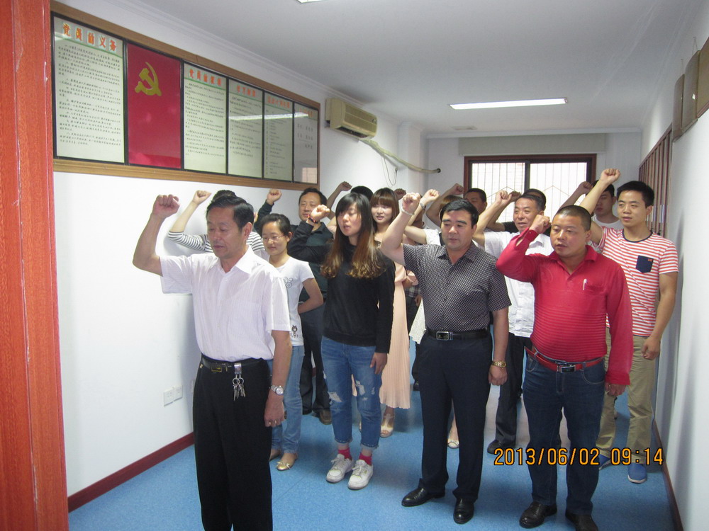 6月2日上午九时,集团公司举行新党员入党宣誓仪式,21名新党员参加了入党宣誓仪式。仪式由集团总顾问吴梧生同志主持。 在吴梧生同志的带领下,21名新党员党员面对党旗庄严宣誓:“我志愿加入中国共产党,拥护党的纲领……”,向党组织表达自己的决心和信念。宣誓过后,集团公司董事长、党支部书记童光金作重要讲话,他要求全体新党员要始终不渝地以共产党员的标准严格要求自己,为党的事业奋斗终身的决心,要从点滴做起,严格要求自己,争取早日加入党组织,为党和人民的事业做出更大的贡献。