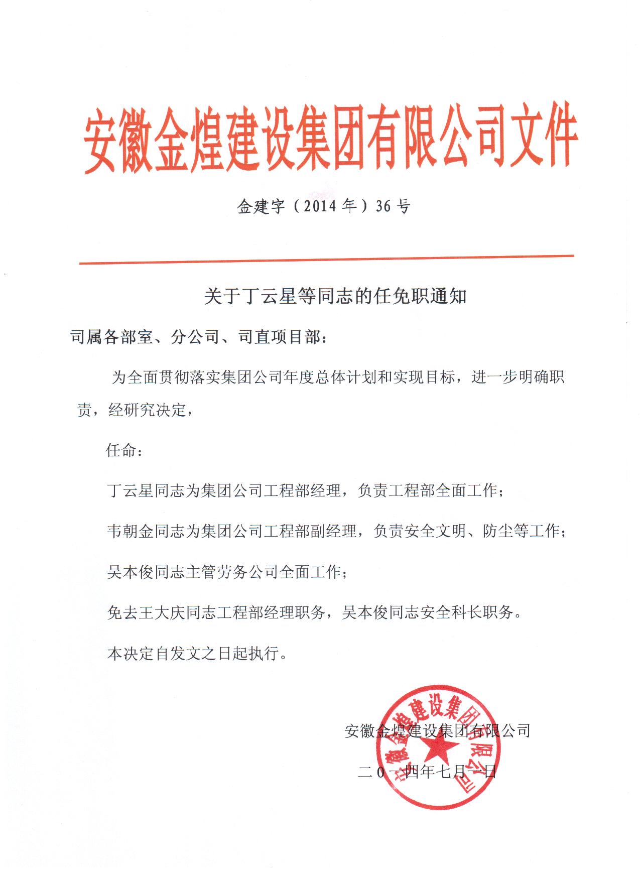 关于丁云星等同志的任免职通知