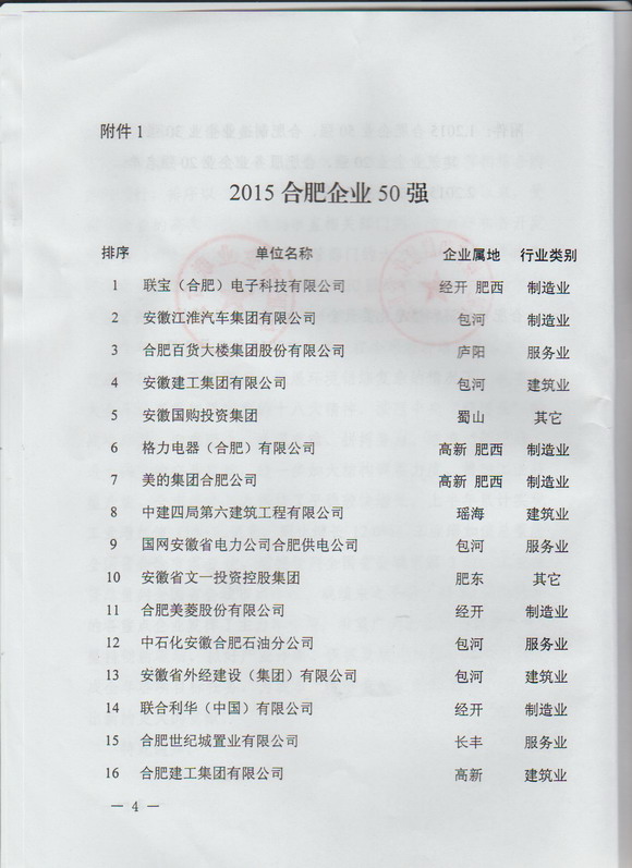 与此同时,会议还发布了合肥制造业企业30强、合肥建筑业企业20强、合肥服务业企业20强榜单。集团公司列居合肥50强企业和合肥建筑20强企业。