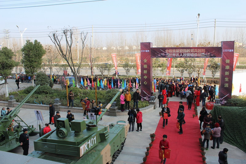 由全椒舜城花开富贵主办的全椒首届爱国主义兵器展&名人政要蜡像展于12月12日盛大开放,本次巡展时间为:2015年12月12日--12月26日,历时半个月。开放当日下午,现场人山人海,近千人聚集在花开富贵营销中心与中心广场,看超大视频播放的中国纪念抗战法西斯胜利70周年阅兵,看兵器展,看蜡像展,很多家长都是带着孩子来看的,这也是对孩子进行一次深刻的爱国主义教育。