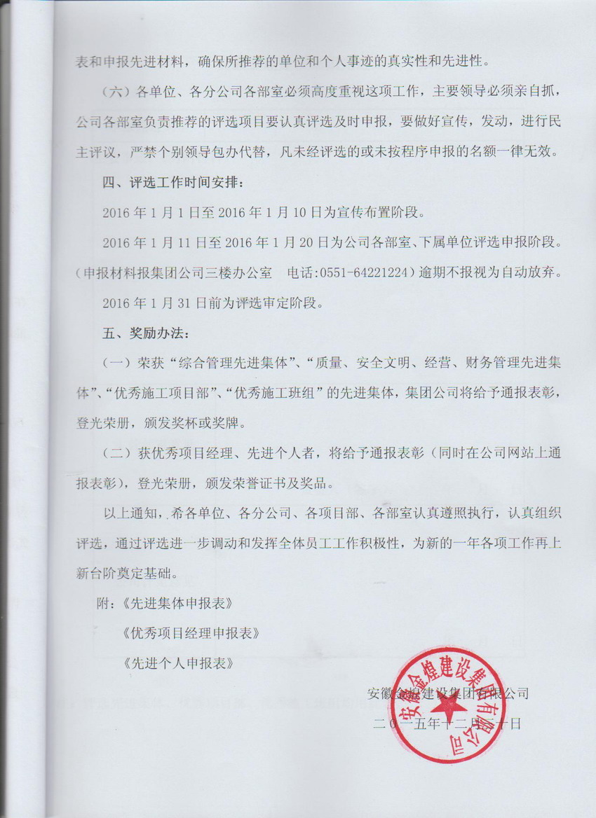 关于开展二0一五年度先进集体、先进个人评选工作的通知