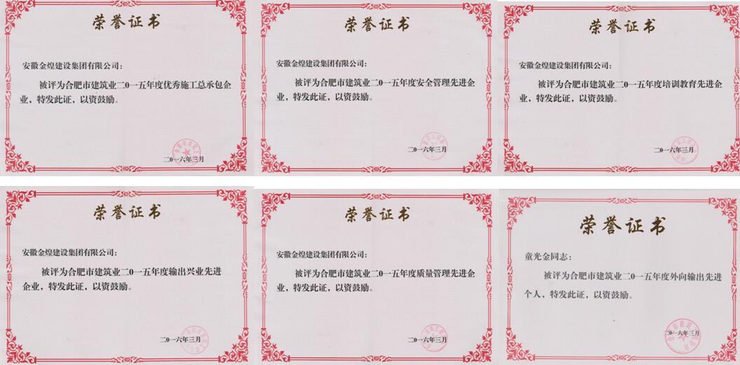 | 金煌集团荣获合肥建筑业优秀施工总承包企业、优秀项目经理等多项殊荣 |