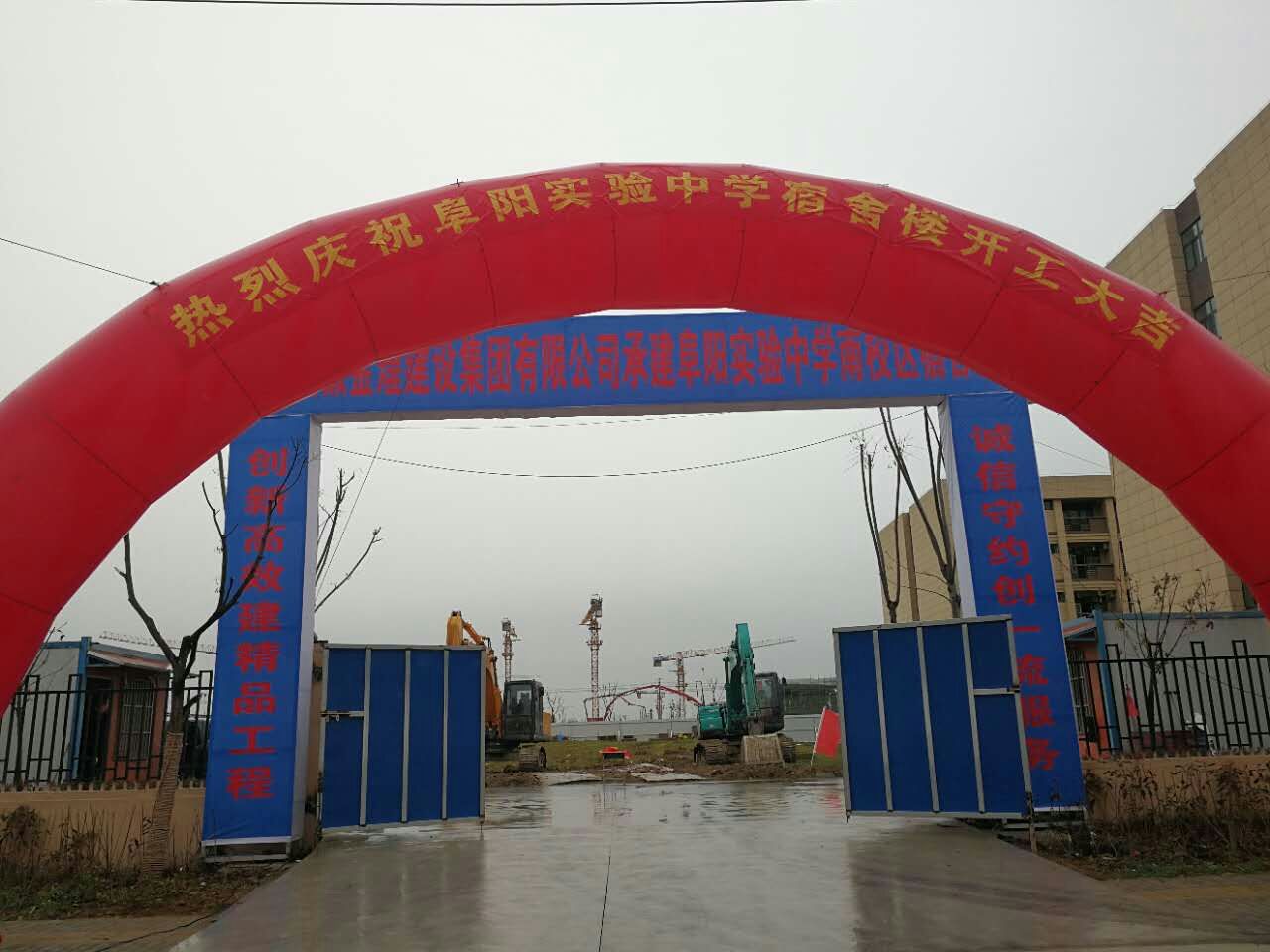 由集团公司承建的阜阳实验中学南校区宿舍项目于2017年3月13日上午9:58分在绵绵春雨中举行开工仪式。集团常务副总经理潘曙同志与建设单位相关领导共同见证了开工仪式。