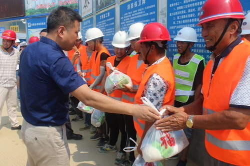 7月26日上午,高新区工委委员、管委会副主任韦建华一行前往我公司承建的高新区城西桥家园D组团建设工地,慰问了冒着高温奋战在工程工地上的一线建设者们,并向大家赠送了防暑用品及药品。