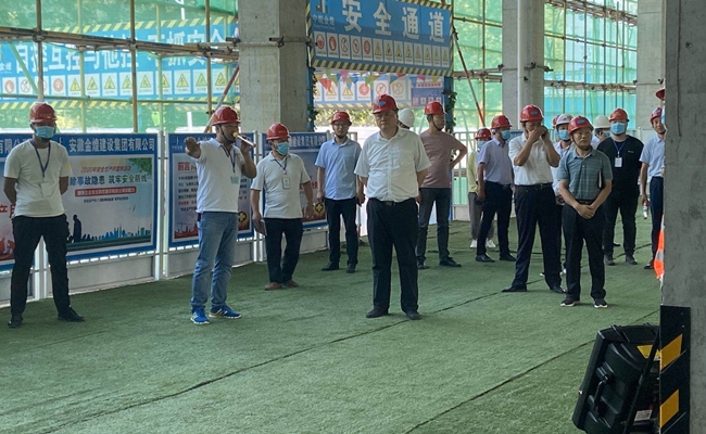 贺懋燮厅长莅临项目,实地查看了阜阳颍淮农商行建设情况,走进信息化监控室、安全体验馆实地查看了项目安全生产、应急管理、施工进展、风险隐患排查等工作,现场听取了项目负责人张健对装配式建筑施工工艺、施工进度、施工难度、品质工程创建及下一步施工计划安排等情况的介绍。贺厅长一行对项目机械化施工、安全管控、建设情况取得的成绩给予了充分肯定。