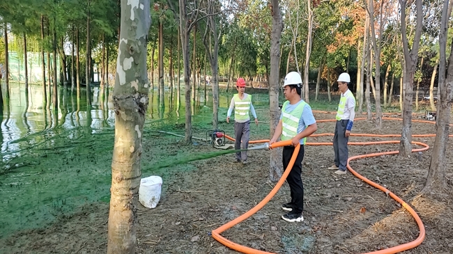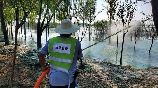 蓝藻防治是一项系统工程,为有效预防控制巢湖蓝藻发生,金煌青年突击队积极打捞死亡水草及漂浮物,对藻类进行常态化清理,在湖湾及局部水域实施人工种植水生植物,促进水生态系统恢复,优化水位调控,促进沉水植物恢复,增强水体自净功能,拉动局部水体流动,缓解藻类水华聚集,布设水动力控藻器和曝气推流装置,改善局部水动力条件。