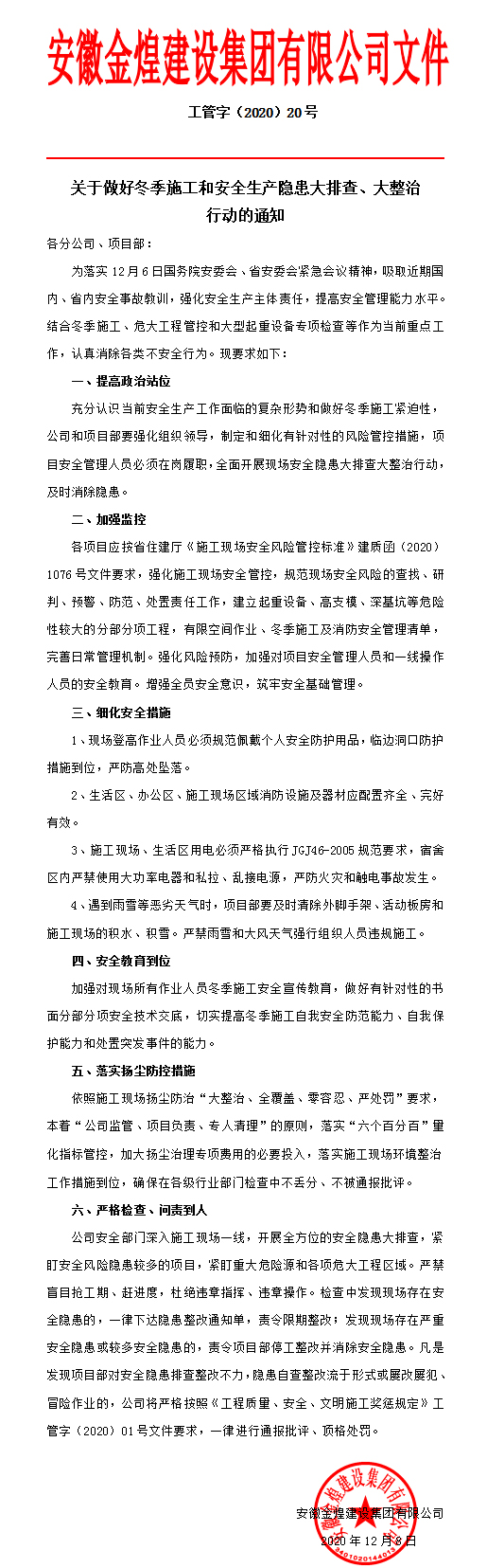 关于制定《安徽金煌建设集团有限公司重污染天气扬尘防治应急预案》的通知