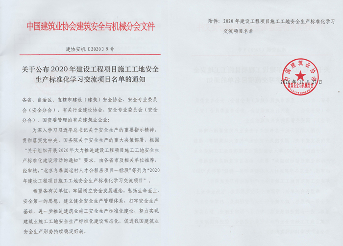 12月23日,全国建筑业安全生产管理经验交流会在北京召开。中国建筑业协会建筑安全与机械分会公布了2020年“全国建设工程项目施工安全生产标准化工地”名单,金煌集团承建的金煌总部广场办公楼项目和肥西全民健身中心项目荣列其中。两项目获此殊荣,离不开全体项目施工团队精心策划,大力推进绿色文明施工,做到安全文明施工管理常态化、可视化、标准化,以显著的成效赢得省市各级建筑协会、主管部门和业主、监理单位等的广泛赞誉。