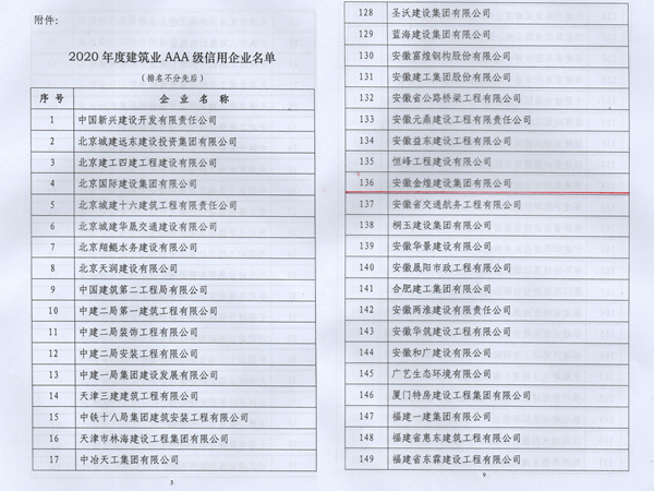 同时获评中国施工企业管理协会和中国建筑业协会两个单位的AAA信用评价,不仅增强了公司在建筑业行业内的竞争力,为公司巩固省内建筑业市场,进而扩大国内市场,开拓国际市场进一步增添助力。
