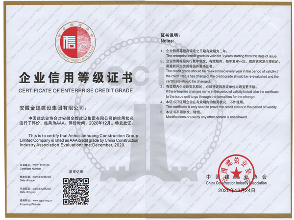 随着国家信用体系建设的不断推进和完善,信用评价已广泛应用到社会各个领域,是企业市场准入、创优评先的重要依据之一。金煌集团继连续七年保持中国施工企业管理协会的AAA信用企业称号后,首次向中国建筑业协会申报企业信用AAA评价资料。经过资料初审、专家考核等环节,最终从众多参评企业中脱颖而出,首次荣获中国建筑业协会AAA级信用企业称号。