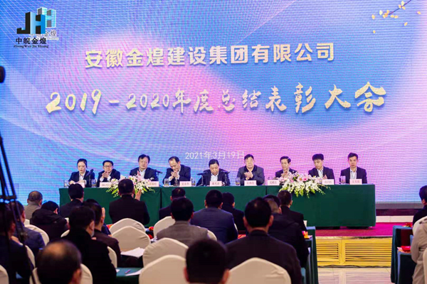 岁序常易,华章日新。3月19日下午3时,安徽水利和顺酒店旭日厅笼罩着热烈的气氛。安徽金煌建设集团2019-2020年度总结表彰大会隆重召开。司属各单位、各分公司、公司各部室全体管理人员、先进集体先进个人代表以及全体职工代表等200余人济济一堂,共话发展,共绘蓝图。集团公司党委书记董事长童光金、总经理吴永华、集团财务总监吴本松、安徽晶宫控股集团有限公司副总裁吴燕信等领导出席会议并在主席台就座。参会人员严格按照政府关于疫情防控制度要求,测量体温,与会人员佩戴口罩。会议由集团公司总顾问吴梧生主持。