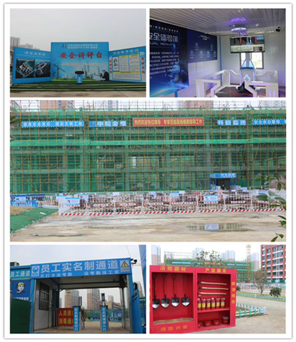 两项目开工伊始,集团公司安全部就从严要求项目部以创建“安徽省级建筑安全生产标准化示范工地”为起点,建立以项目经理为组长的安全文明施工管理体系,制定安全生产责任和管理标准,实行一岗双责,坚持管生产必须管安全的原则,以“零违章、零事故、零伤亡”为安全管理目标。坚持“安全第一、预防为主、综合治理”的安全方针,严格按照《安徽省建筑安全生产标准化示范工地评价标准》的要求开展安全文明施工管理工作。