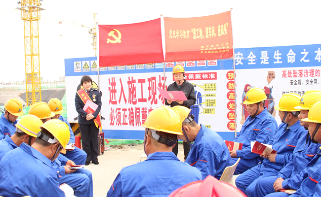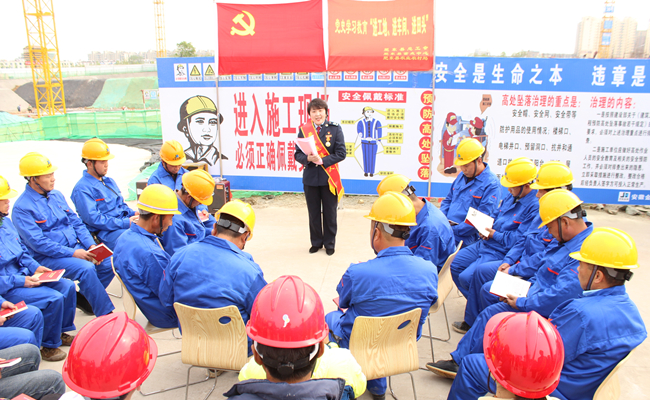 4月14日下午3时,由肥东县总工会组织的肥东县党史学习教育“进工地、进车间、进田头”百场宣讲活动在集团公司岱河花园项目部拉开序幕。活动现场,肥东县最美退役军人汪素菊正在绘声绘色地给工友们讲述中共一大会议的故事,工友们听得津津有味。“我要把革命的精神带到工作中,抓好项目安全,做到安全生产警钟长鸣,保证项目的安全。”项目安全员王成表示。“通过面对面的党史学习,我要在施工技术工作中不断进取,保证工程质量,打造精品。”项目施工技术员陈祥伦激动地说。
