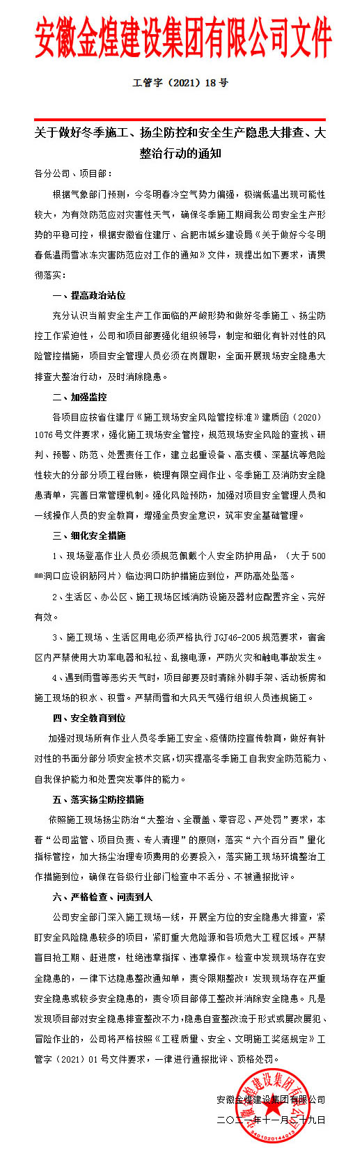 关于做好冬季施工、扬尘防控和安全生产隐患大排查、大整治行动的通知