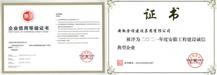 近日,从安徽省建筑业协会公布的皖建协(2022)1号文关于2021年度安徽工程建设诚信典型企业、AAA信用企业、诚信企业家、诚信项目经理的名单中获悉,安徽金煌建设集团有限公司荣获2021年度安徽省工程建设行业诚信典型企业称号、2021年度安徽建设工程AAA级信用企业称号、党委书记董事长童光金先生荣获2021年度安徽工程建设诚信企业家称号、项目经理陈玉军同志荣获2021年度安徽工程建设诚信项目经理称号、副总经理许莲同志入选安徽省建筑业协会信用专家。