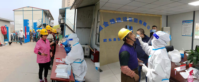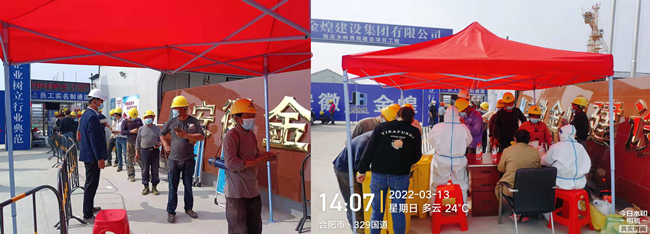 为确保精准落实合肥市人民政府关于疫情防控的工作部署,金煌集团及时下发金建字(2022)06号文关于进一步加强疫情防控工作的文件,要求集团所有在建工程必须做好全员核酸检测工作,筑牢疫情防线。同时集团各职能部门切实发挥主观能动性,各项目部强化防疫知识宣传教育,做好防疫物资储备,加强食堂就餐管理,实施分时、分批、错时就餐,避免人员集聚用餐。对新进场的工人必须严格落实体温测量、佩戴口罩、核酸检测、安康码、行程码、扫码查验等措施,并做到一人一表一档,精准掌握全场人员出行情况,坚决杜绝防疫漏洞。