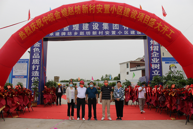 初夏的五月,万物并秀。由安徽金煌建设集团有限公司承建的牌坊乡赵坊新村安置小区建设工程喜迎开工之日。5月26日上午10时28分,赵坊新村安置小区工地现场洋溢着一派热烈的气氛。金煌集团董事长童光金、总经理吴永华等领导与各方责任主体单位的相关负责人共同出席开工仪式,一起见证这重要的时刻。