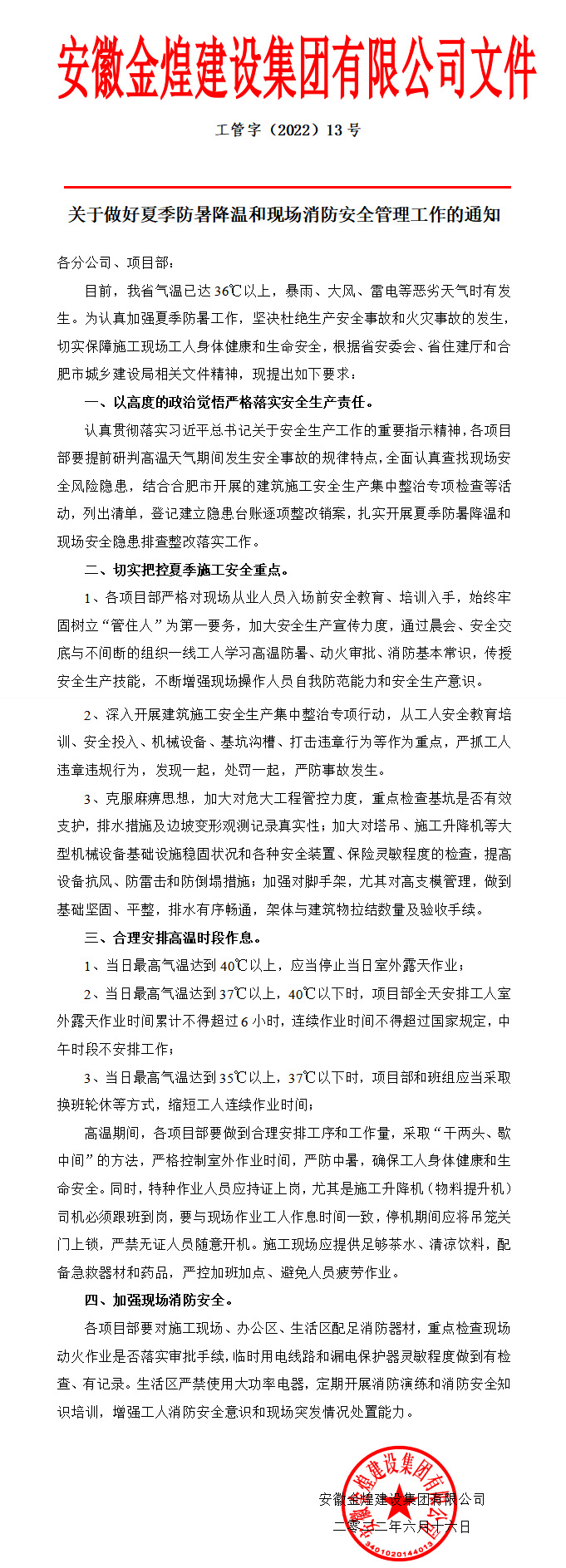 关于做好夏季防暑降温和现场消防安全管理工作的通知