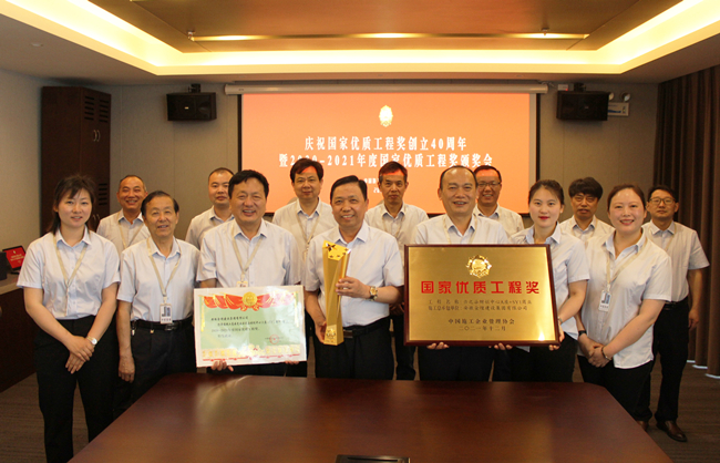 6月26日上午9时,由中国施工企业管理协会举办的“庆祝国家优质工程奖创立40周年暨2020-2021年度国家优质工程奖颁奖会”在北京隆重召开。会议采取视频会议和网络直播的方式,在北京设主会场,安徽分会场设在中建四局六公司会议室。出席安徽分会场会议的领导有:安徽省建筑业协会会长费瑞林、安徽省建筑业协会秘书长许家宏、中建四局六公司副总经理舒开明。来自全省各地获奖企业代表齐聚一堂,共同饱览精品工程 领略国优精神。集团公司副总经理许莲和工程部副经理钟卫平受邀参会。